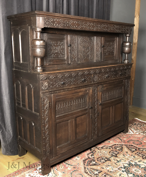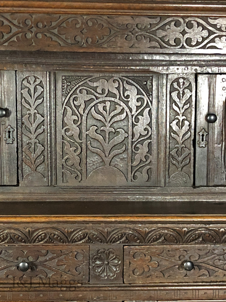 A large piece built, like many other examples from the period, in two sections in a nearly-square plan, unified by details of carving, moulding, and construction.