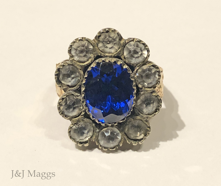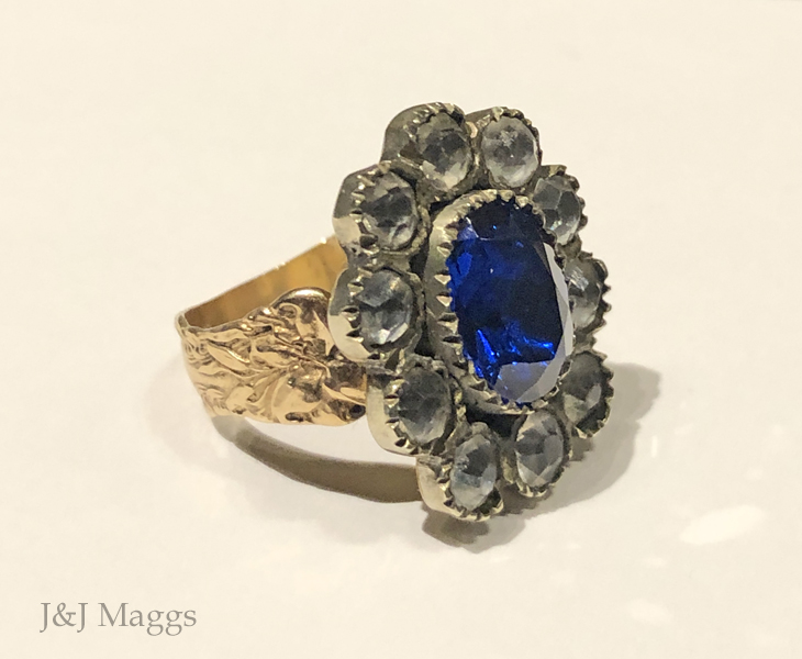 Georgian gold sapphire paste ring with diamond pastes in surround