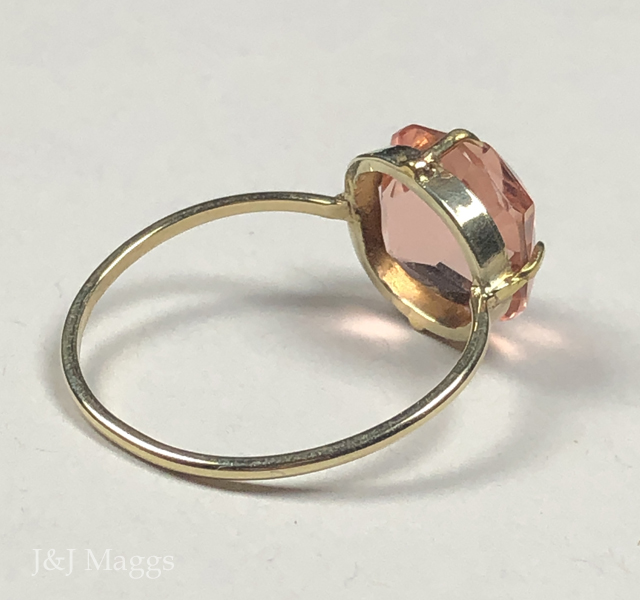 1800s large, faceted blush pink paste gold ring