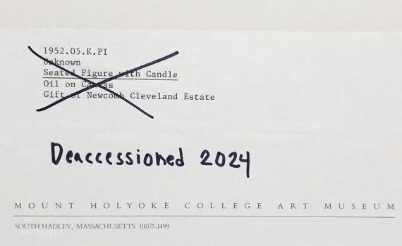 The painting was given to the Mount Holyoke College Art Museum by the estate of Newcomb Cleveland in 1952. It was de-accessioned by the museum in 2024.