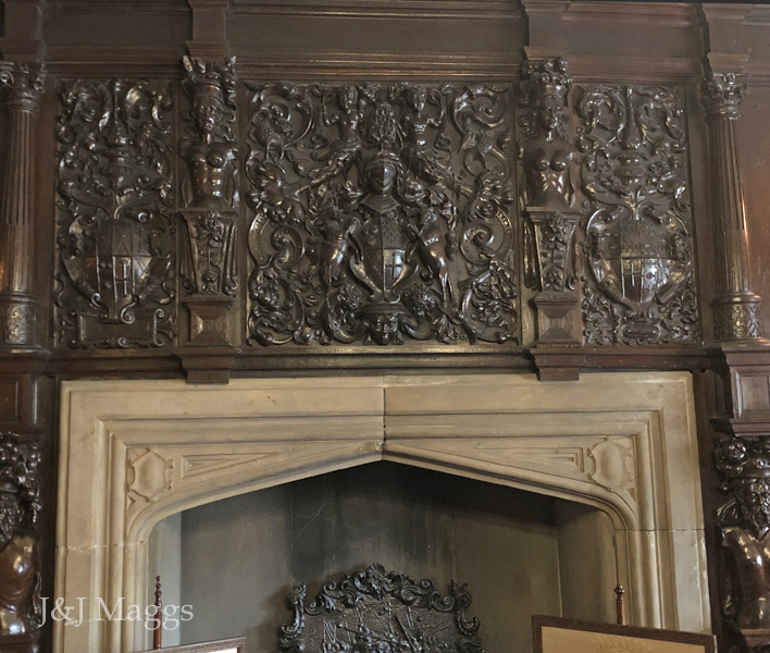The paneling and this overmantel in The Queen's Room typify the high standards and financial means of the Tudor era Stricklands