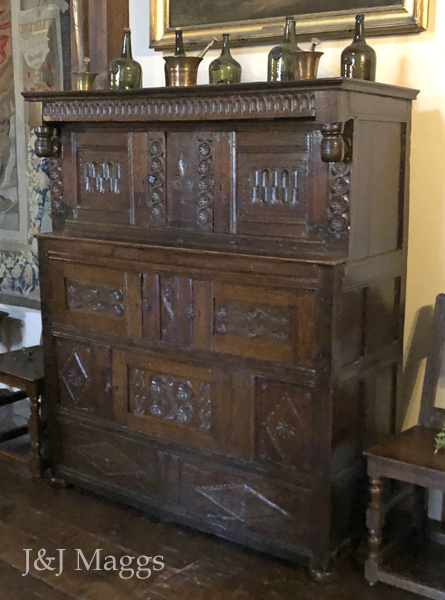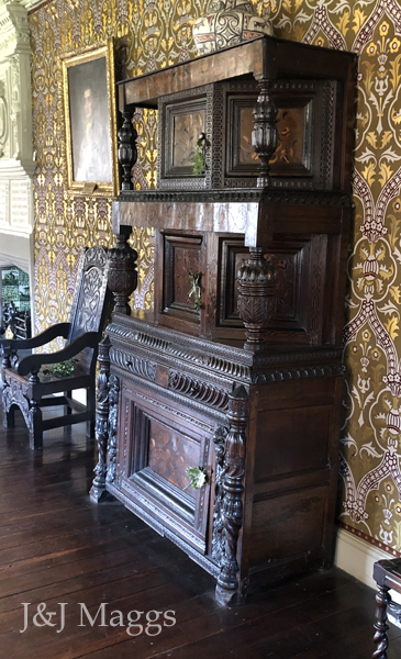 One of the long gallery's "Elizabethan" court cupboard, the whimsical creation of a 19th-century antiques dealer