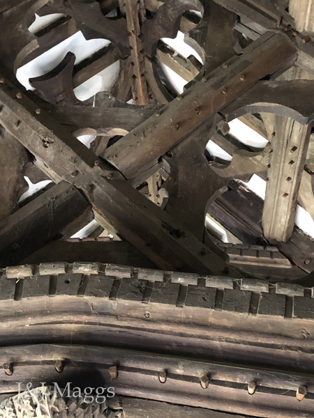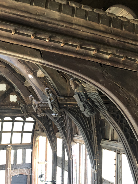 In the Great Hall, angels bear the family arms of medieval benefactors