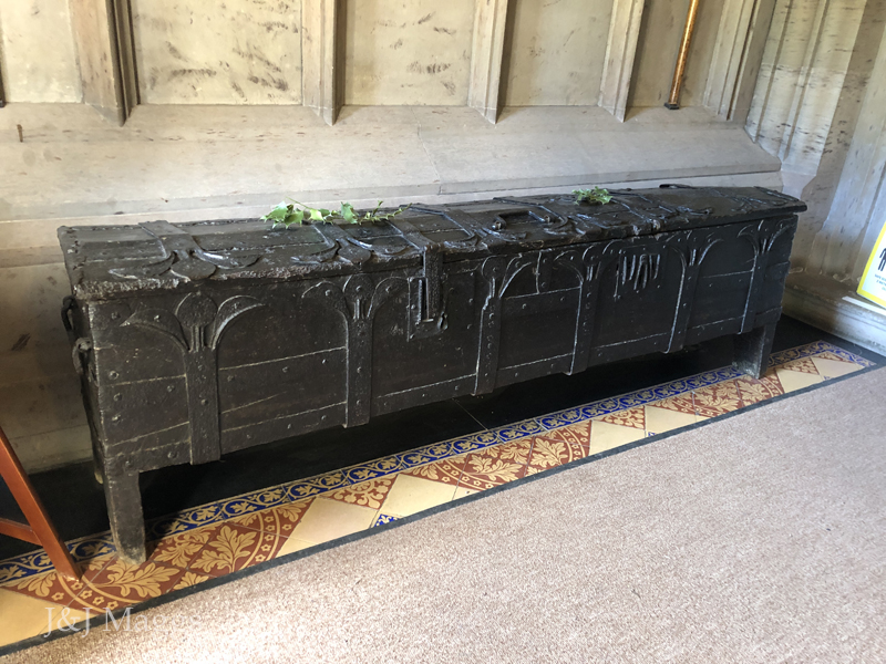 Perhaps the earliest piece of furniture in the house is this oak coffer or sword chest with iron fittings (c. 1500)