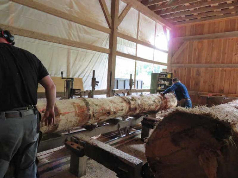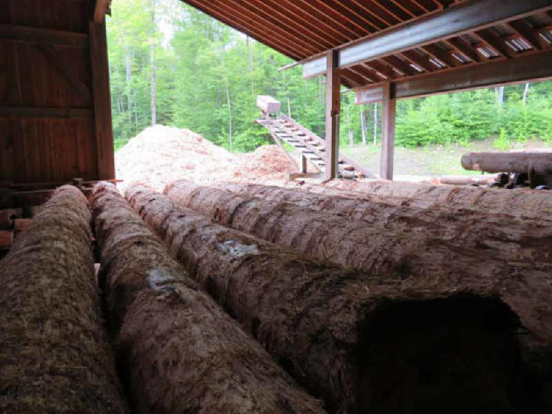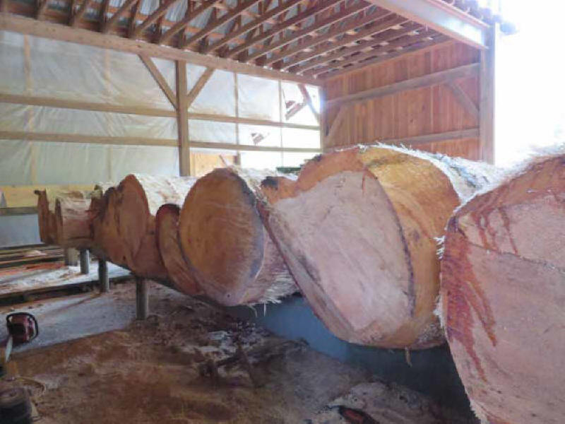A few of the scores of large trees, harvested from Foxbard Farm in nearby Shelburne