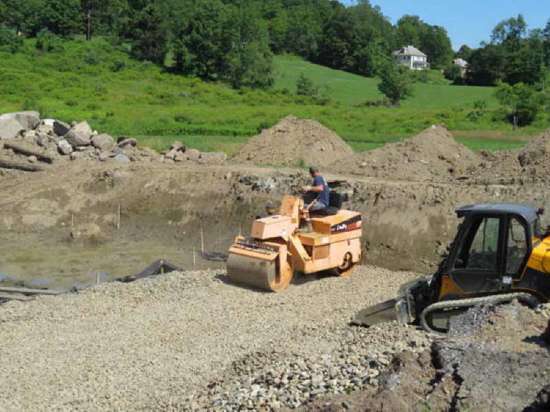 Nick Potter levelling and compacting the stone