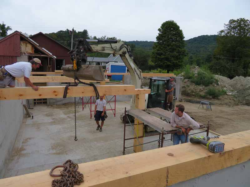 Jesse speaking with the operator who delivered the Douglas fir 2X12s that will support the roof