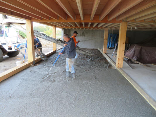 Dave Bernard and company, back to pour the floor under the lean-to