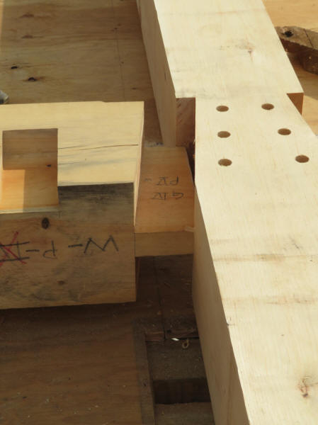 The upper part of the frame will be held together by these king-sized 32-foot timbers.