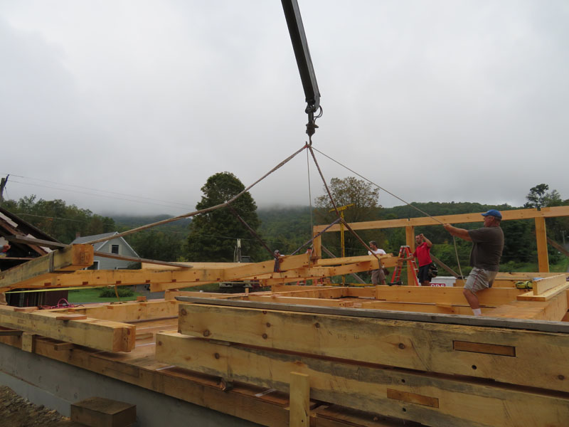 This was our crane operator Doug's first raising, and he responded to instructions and the demands of the crew like a veteran.