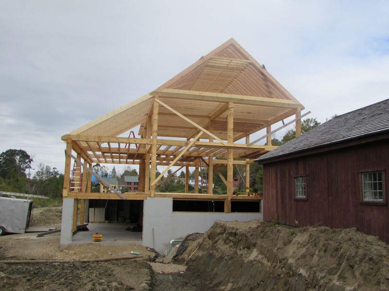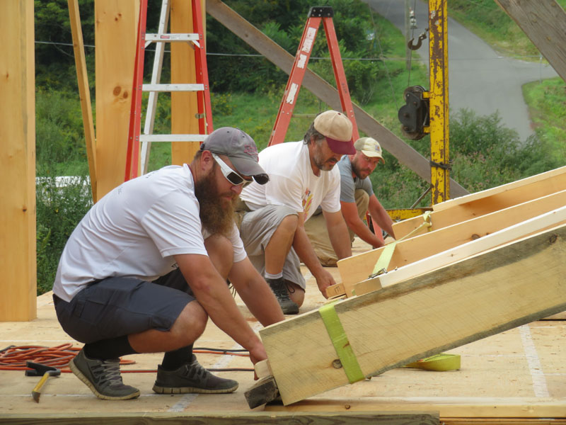 While Jesse continued to cut timbers, the Slocum team began making rafter trusses -