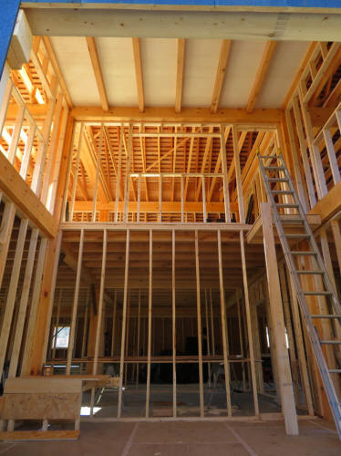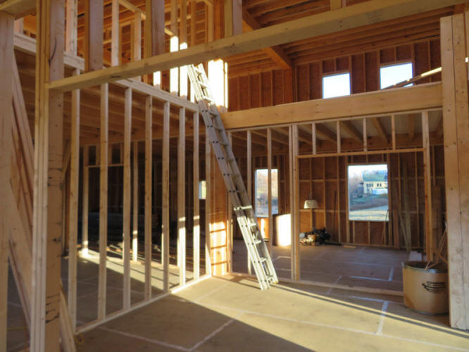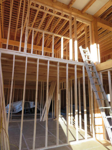 Finished framing of one wall of the entry