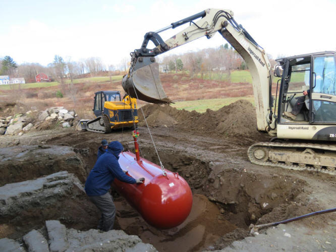 The 500-gallon propane tank that will store the fuel that will heat the building