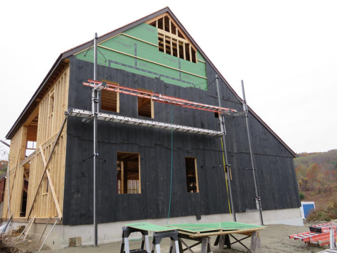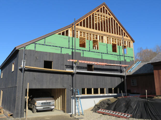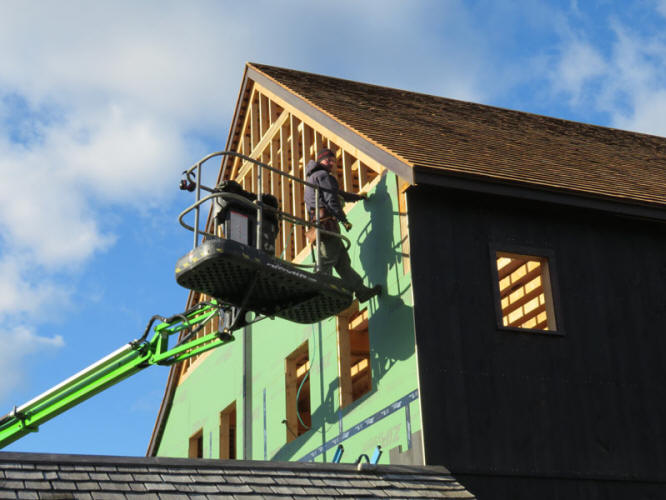 The north side sheathing, nearing completion