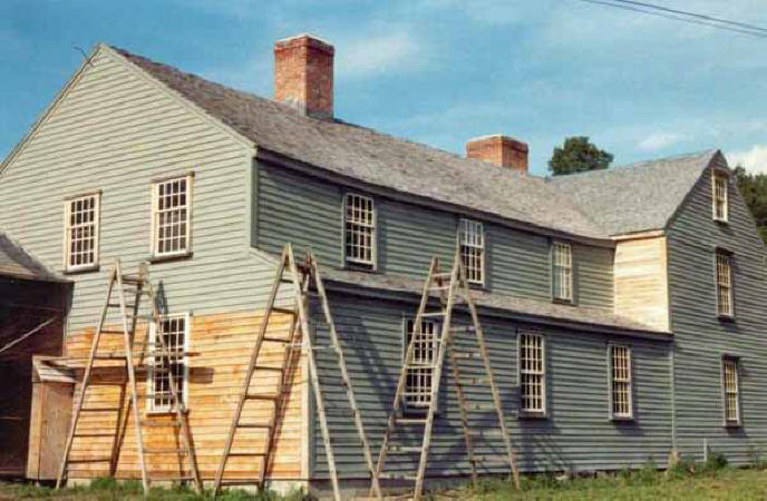 planning to cover as much of the front house as possible with period clapboards, while using new ones for the rear portions.